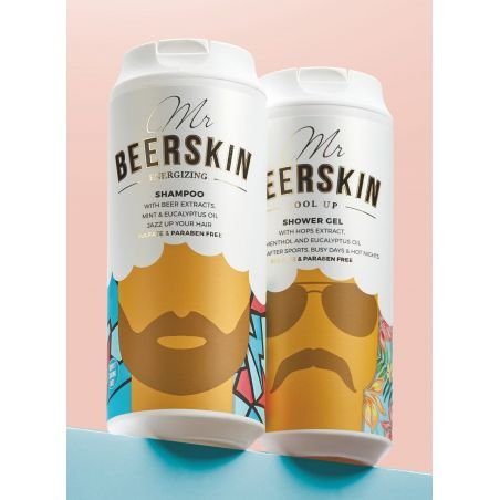 Galinga, bet švelni Mr. Beerskin energizuojančio šampūno formulė, pasižyminti puikiomis putojimo savybėmis ir geru valomuoju poveikiu, švelniai prausia plaukus ir galvos odą. Jis minkština ir drėkina plaukus, palieka juos žvilgančius ir blizgančius. Jo sudėtyje yra 4 pagrindiniai alaus ekstraktai su dideliu kiekiu biologiškai svarbių baltymų, vitaminų ir mineralų. Natūralūs melisų ir pipirmėčių ekstraktai gaivina ir suteikia mėtų kvapą, o mentolis suteikia gaivumo pojūtį. Eukaliptų aliejus ir D-pantenolis apsaugo plaukus nuo pažeidimų, tankina plaukus, didina jų žvilgesį ir blizgesį bei veikia kaip ilgalaikis plaukų drėkiklis. Raminantis 12 žolelių ekstraktų mišinys suteikia nuostabų aromatą ir veikdamas kartu su alantoinu atkuria, sumažina sausumą ir ramina.